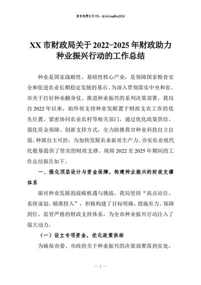 【七哥公文】2026年:XX市财政局关于2022-2025年财政助力种业振兴行动的工作总结+更多免费公文+VX:QiGeGongWen2024