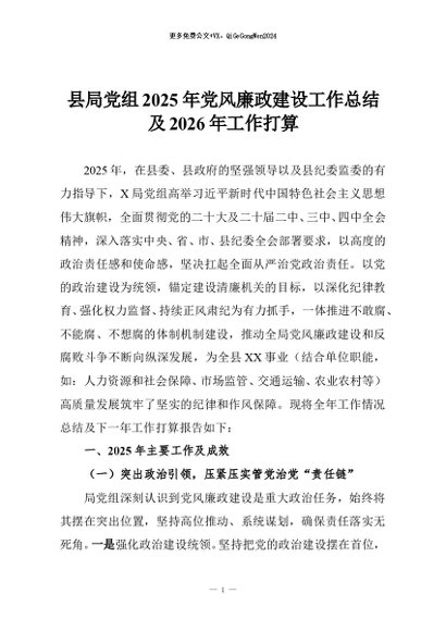 【七哥公文】2026年:县局党组2025年党风廉政建设工作总结及2026年工作打算+更多免费公文+VX:QiGeGongWen2024