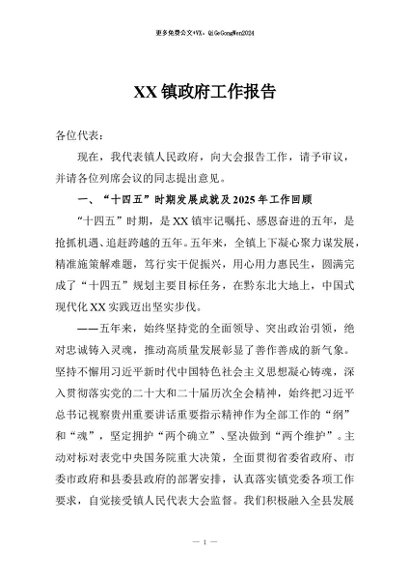 / 【七哥公文】2026年:XX镇政府工作报告+更多免费公文+VX:QiGeGongWen2024