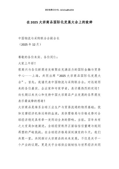 / 【七哥公文】2026年:在2025大宗商品国际化发展大会上的致辞_副本+更多免费公文+VX:QiGeGongWen2024