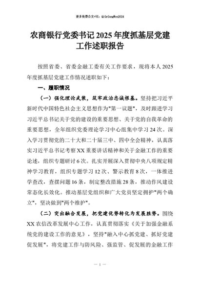 【七哥公文】2026年:农商银行党委书记2025年度抓基层党建工作述职报告_副本+更多免费公文+VX:QiGeGongWen2024