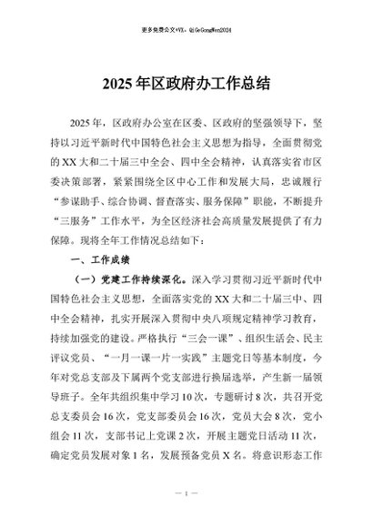 / 【七哥公文】2026年:2025年区政府办工作总结+更多免费公文+VX:QiGeGongWen2024