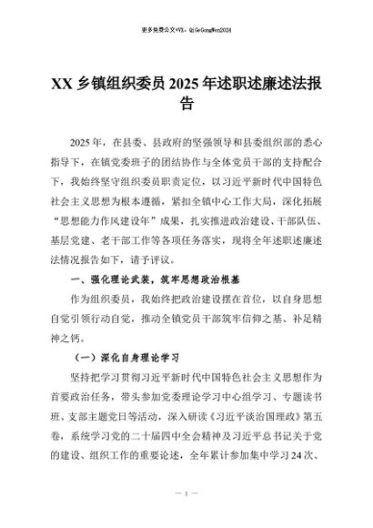 / 【七哥公文】2026年:XX乡镇组织委员2025年述职述廉述法报告+更多免费公文+VX:QiGeGongWen2024