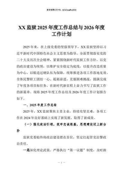 / 【七哥公文】2026年:XX监狱2025年度工作总结与2026年度工作计划+更多免费公文+VX:QiGeGongWen2024
