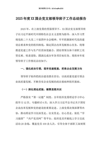 / 【七哥公文】2026年:2025年度XX国企党支部领导班子工作总结报告+更多免费公文+VX:QiGeGongWen2024