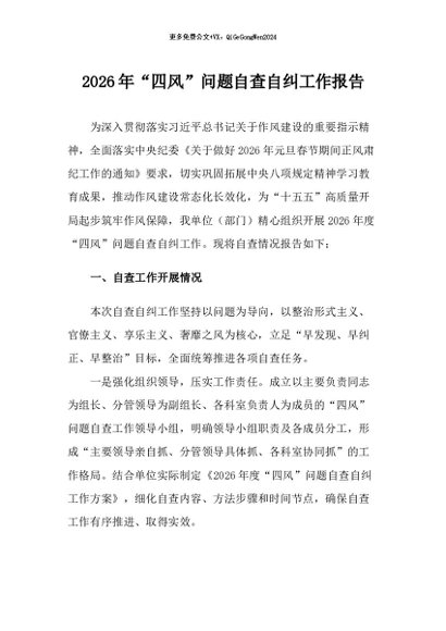 / 【七哥公文】2026年:2026年“四风”问题自查自纠工作报告+更多免费公文+VX:QiGeGongWen2024