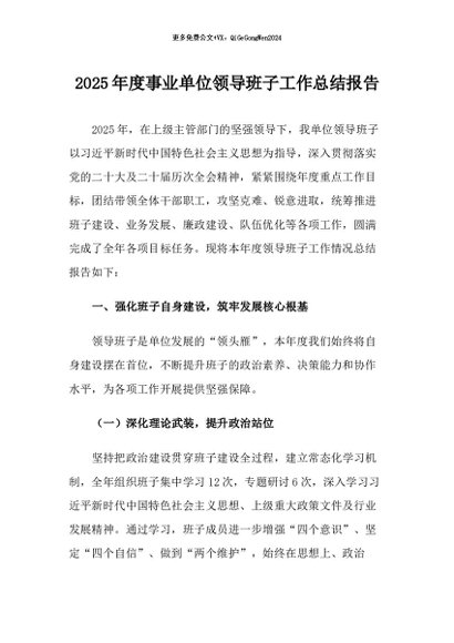 / 【七哥公文】2026年:2025年度事业单位领导班子工作总结报告+更多免费公文+VX:QiGeGongWen2024