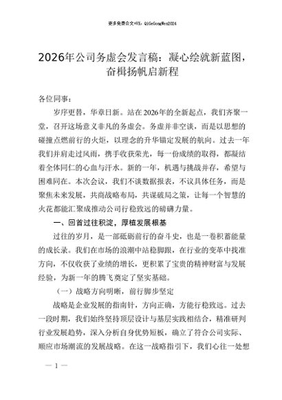 【七哥公文】2026年:2026年公司务虚会发言稿:凝心绘就新蓝图,奋楫扬帆启新程+更多免费公文+VX:QiGeGongWen2024