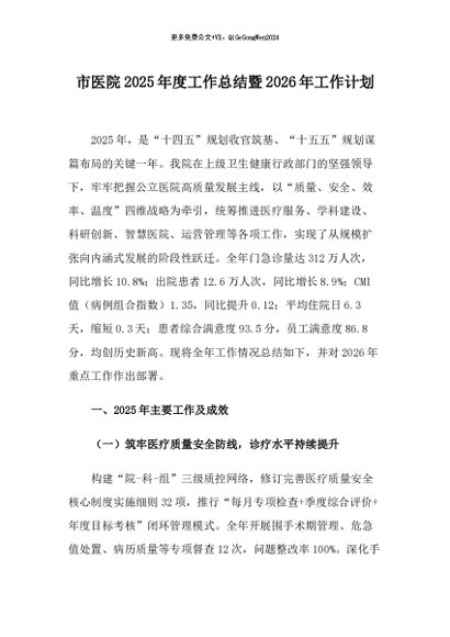 【七哥公文】2026年:市医院2025年度工作总结暨2026年工作计划+更多免费公文+VX:QiGeGongWen2024