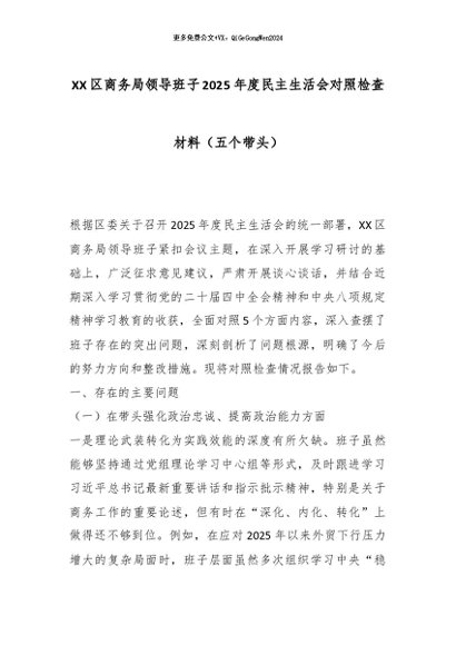 【七哥公文】2026年:XX区商务局领导班子2025年度民主生活会对照检查材料(五个带头)_副本+更多免费公文+VX:QiGeGongWen2024