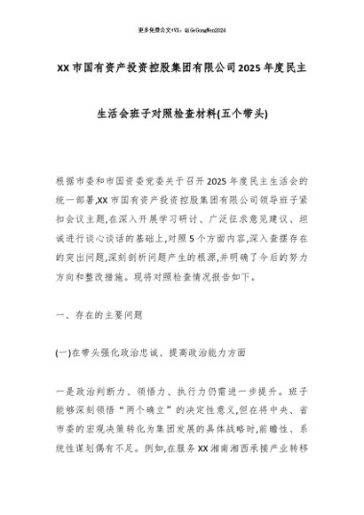 【七哥公文】2026年:XX市国有资产投资控股集团有限公司2025年度民主生活会班子对照检查材料(五个带头)_副本+更多免费公文+VX:QiGeGongWen2024