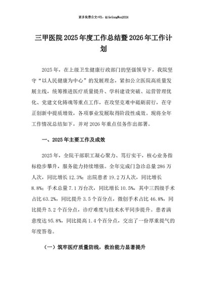 【七哥公文】2026年:三甲医院2025年度工作总结暨2026年工作计划+更多免费公文+VX:QiGeGongWen2024