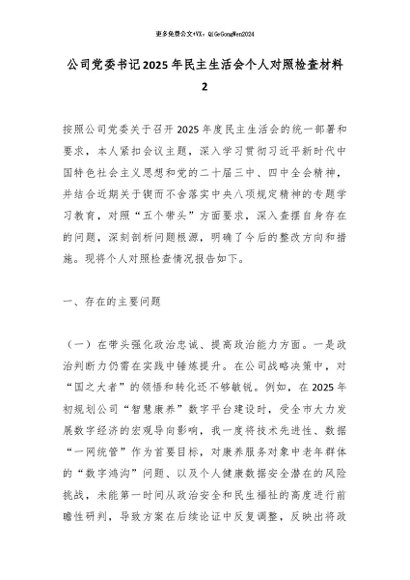 【七哥公文】2026年:公司党委书记2025年民主生活会个人对照检查材料2_副本+更多免费公文+VX:QiGeGongWen2024