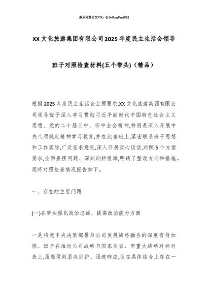 【七哥公文】2026年:XX文化旅游集团有限公司2025年度民主生活会领导班子对照检查材料(五个带头)(精品)_副本+更多免费公文+VX:QiGeGongWen2024