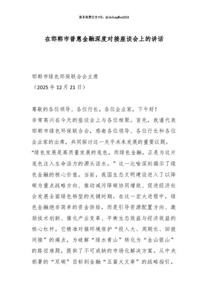 / 【七哥公文】2026年:在邯郸市普惠金融深度对接座谈会上的讲话_副本+更多免费公文+VX:QiGeGongWen2024