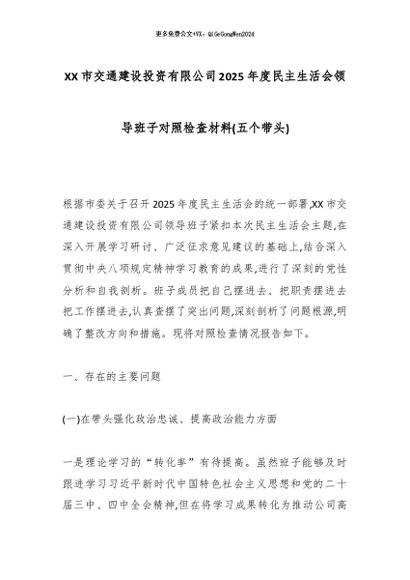 【七哥公文】2026年:XX市交通建设投资有限公司2025年度民主生活会领导班子对照检查材料(五个带头)_副本+更多免费公文+VX:QiGeGongWen2024