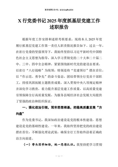 【七哥公文】2026年:X行党委书记2025年度抓基层党建工作述职报告_副本+更多免费公文+VX:QiGeGongWen2024