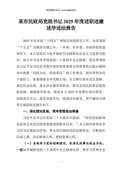 【七哥公文】2026年:某市民政局党组书记2025年度述职述廉述学述法报告docx_副本+更多免费公文+VX:QiGeGongWen2024