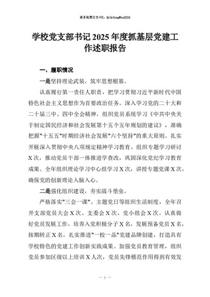 【七哥公文】2026年:学校党支部书记2025年度抓基层党建工作述职报告_副本+更多免费公文+VX:QiGeGongWen2024