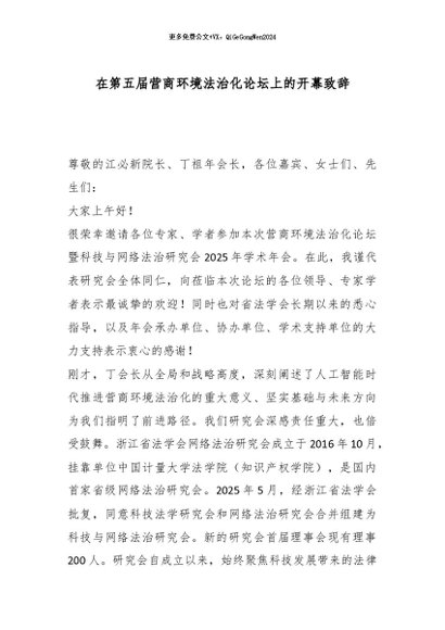 / 【七哥公文】2026年:在第五届营商环境法治化论坛上的开幕致辞_副本+更多免费公文+VX:QiGeGongWen2024
