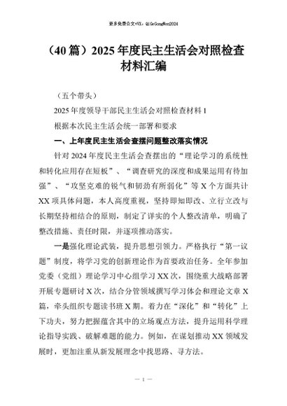 【七哥公文】2026年:(40篇)2025年度民主生活会对照检查材料汇编_副本+更多免费公文+VX:QiGeGongWen2024