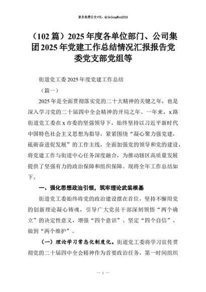 【七哥公文】2026年:(102篇)2025年度各单位部门、公司集团2025年党建工作总结情况汇报报告党委党支部党组等+更多免费公文+VX:QiGeGongWen2024