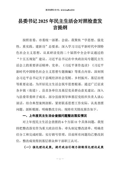 【七哥公文】2026年:县委书记2025年民主生活会对照检查发言提纲_副本+更多免费公文+VX:QiGeGongWen2024