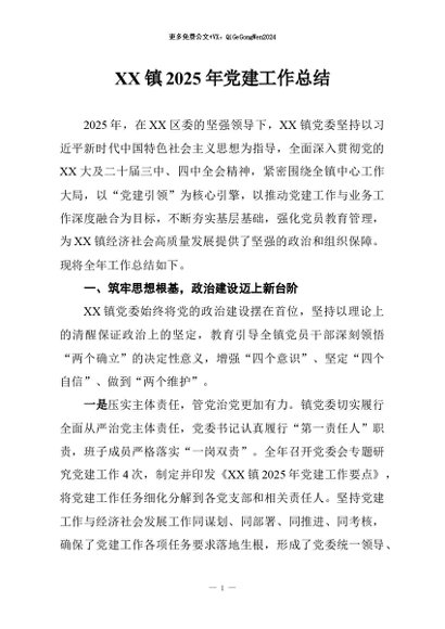 / 【七哥公文】2026年:XX镇2025年党建工作总结_副本+更多免费公文+VX:QiGeGongWen2024
