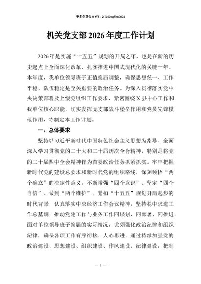/ 【七哥公文】2026年:机关党支部2026年度工作计划_副本+更多免费公文+VX:QiGeGongWen2024