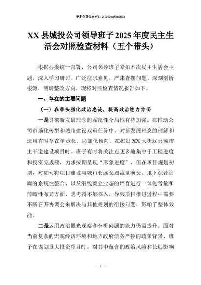 【七哥公文】2026年:XX县城投公司领导班子2025年度民主生活会对照检查材料(五个带头)_副本+更多免费公文+VX:QiGeGongWen2024