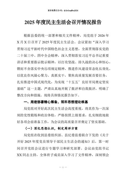/ 【七哥公文】2026年:2025年度民主生活会召开情况报告_副本+更多免费公文+VX:QiGeGongWen2024