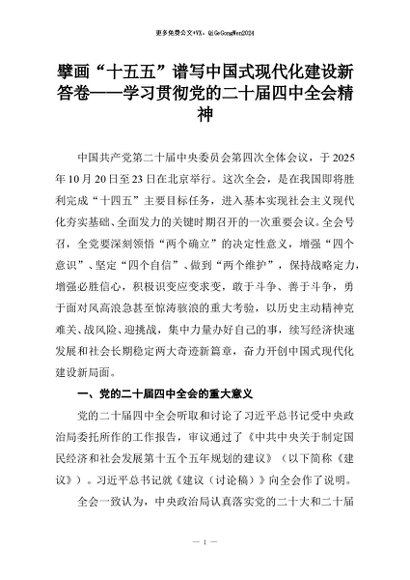 【七哥公文】2026年:擘画“十五五”谱写中国式现代化建设新答卷——学习贯彻党的二十届四中全会精神+更多免费公文+VX:QiGeGongWen2024
