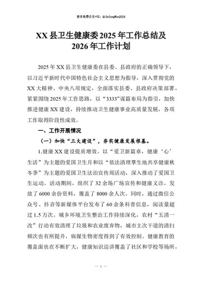 【七哥公文】2026年:XX县卫生健康委2025年工作总结及2026年工作计划_副本+更多免费公文+VX:QiGeGongWen2024