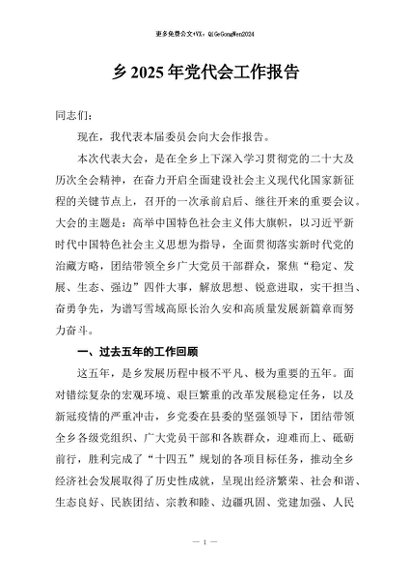 / 【七哥公文】2026年:乡2025年党代会工作报告_副本+更多免费公文+VX:QiGeGongWen2024