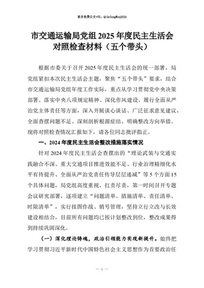 【七哥公文】2026年:市交通运输局党组2025年度民主生活会对照检查材料(五个带头)_副本+更多免费公文+VX:QiGeGongWen2024