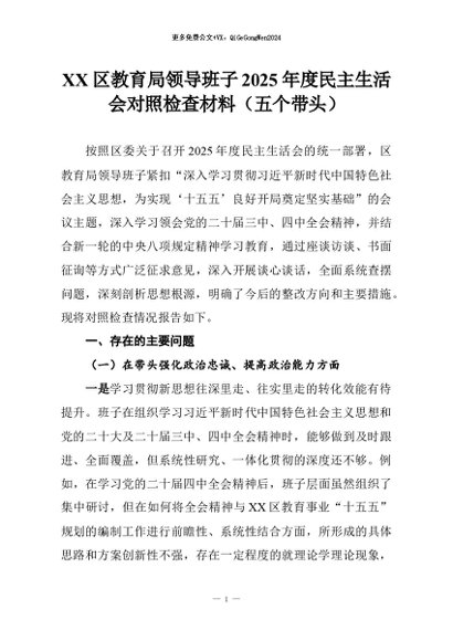 【七哥公文】2026年:XX区教育局领导班子2025年度民主生活会对照检查材料(五个带头)_副本+更多免费公文+VX:QiGeGongWen2024