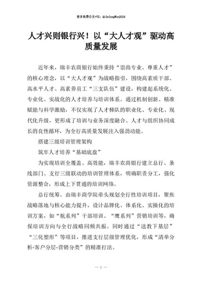 / 【七哥公文】2026年:人才兴则银行兴!以“大人才观”驱动高质量发展+更多免费公文+VX:QiGeGongWen2024