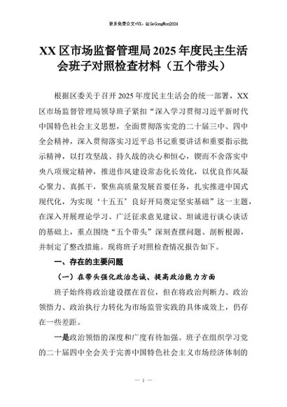 【七哥公文】2026年:XX区市场监督管理局2025年度民主生活会班子对照检查材料(五个带头)_副本+更多免费公文+VX:QiGeGongWen2024