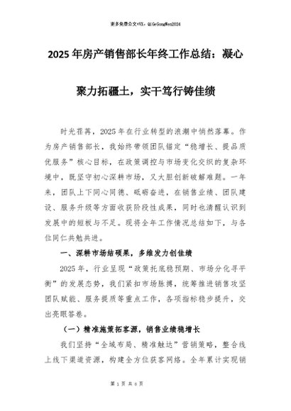 【七哥公文】2026年:2025年房产销售部长年终工作总结:凝心聚力拓疆土,实干笃行铸佳绩+更多免费公文+VX:QiGeGongWen2024