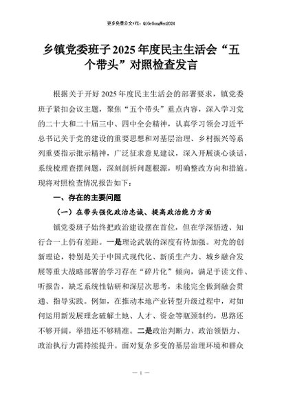 【七哥公文】2026年:乡镇党委班子2025年度民主生活会“五个带头”对照检查发言_副本+更多免费公文+VX:QiGeGongWen2024