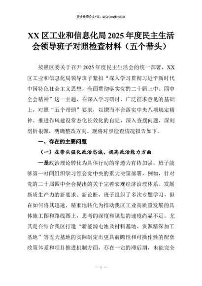 【七哥公文】2026年:XX区工业和信息化局2025年度民主生活会领导班子对照检查材料(五个带头)docx_副本+更多免费公文+VX:QiGeGongWen2024
