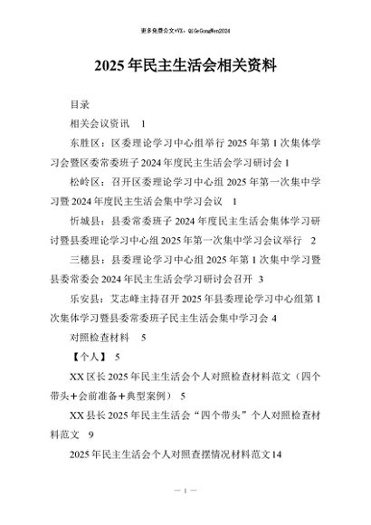 / 【七哥公文】2026年:2025年民主生活会相关资料_副本+更多免费公文+VX:QiGeGongWen2024