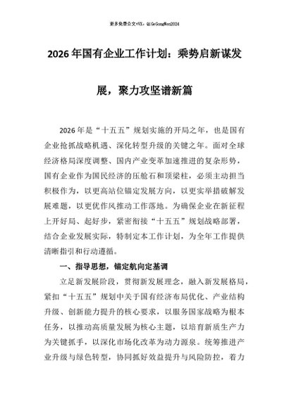 【七哥公文】2026年:2026年国有企业工作计划:乘势启新谋发展,聚力攻坚谱新篇+更多免费公文+VX:QiGeGongWen2024