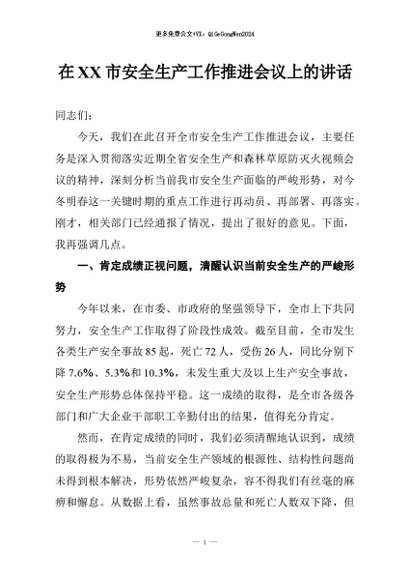 / 【七哥公文】2026年:在XX市安全生产工作推进会议上的讲话+更多免费公文+VX:QiGeGongWen2024