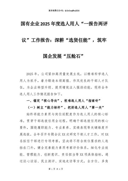 【七哥公文】2026年:国有企业2025年度选人用人“一报告两评议”工作报告:深耕“选贤任能”,筑牢国企发展“压舱石”+更多免费公文+VX:QiGeGongWen2024