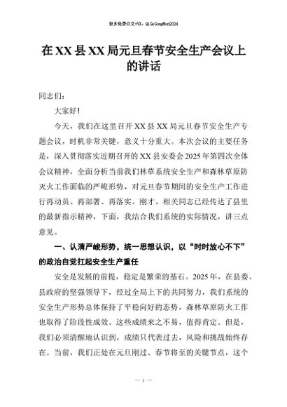 / 【七哥公文】2026年:在XX县XX局元旦春节安全生产会议上的讲话+更多免费公文+VX:QiGeGongWen2024
