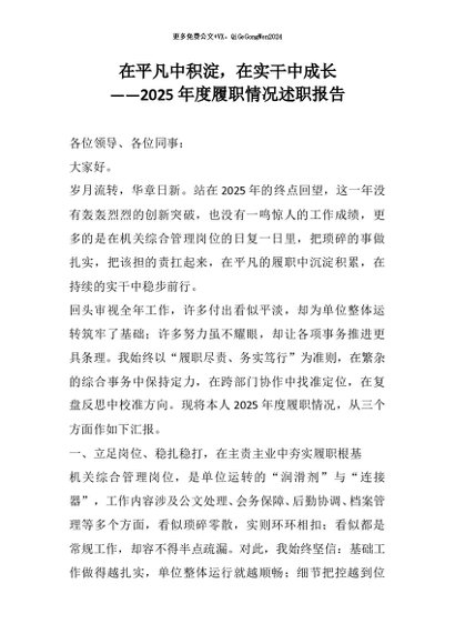 【七哥公文】2026年:在平凡中积淀,在实干中成长——2025年度履职情况述职报告+更多免费公文+VX:QiGeGongWen2024