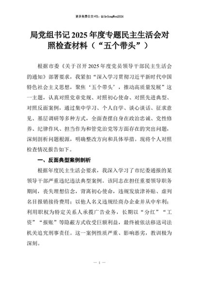 【七哥公文】2026年:局党组书记2025年度专题民主生活会对照检查材料(“五个带头”)+更多免费公文+VX:QiGeGongWen2024