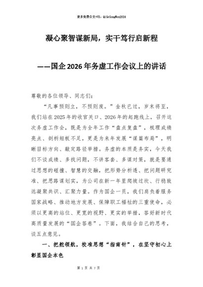 【七哥公文】2026年:国企2026年务虚工作会议上的讲话:凝心聚智谋新局,实干笃行启新程+更多免费公文+VX:QiGeGongWen2024