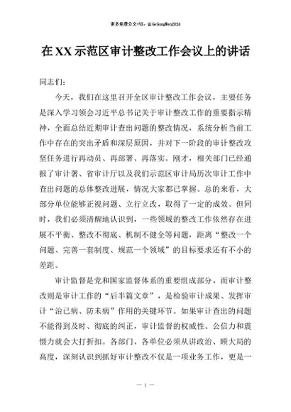 / 【七哥公文】2026年:在XX示范区审计整改工作会议上的讲话+更多免费公文+VX:QiGeGongWen2024